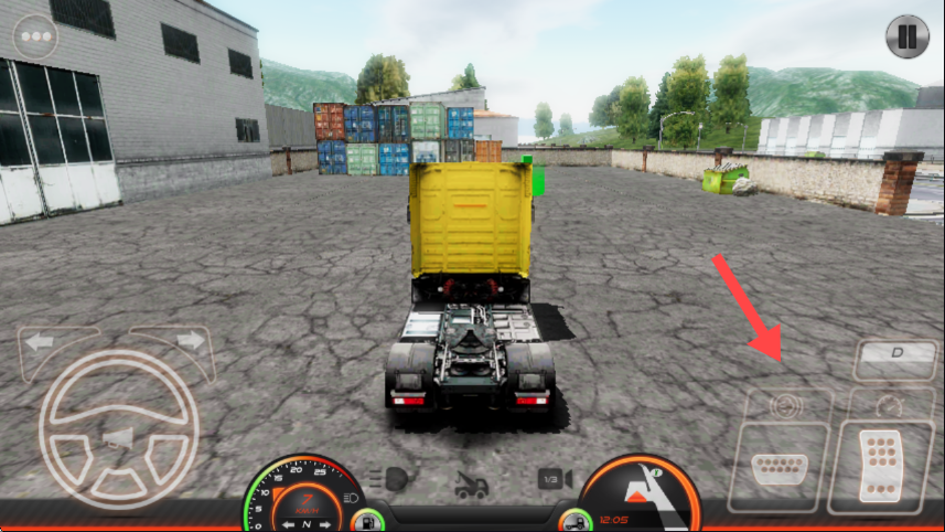 3、熟悉右侧操作按钮(如档位等),合理使用这些按钮来控制卡车的行驶状态,完成游戏任务。