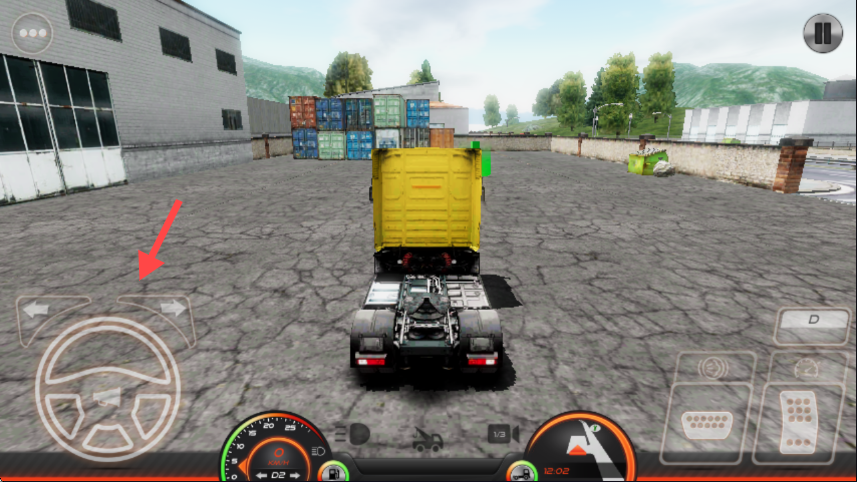 2、进入游戏后,通过左下角方向盘图标操控卡车方向,确保在场景中顺利行驶。