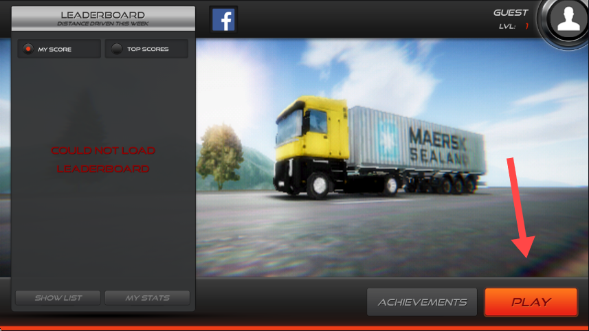 1、游戏界面中点击【PLAY】按钮开始游戏,忽略左侧【COULD NOT LOAD LEADERBOARD】提示,进入游戏环节。
