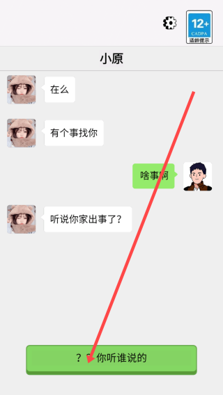 2、在聊天界面中,点击【?你听谁说的】按钮回复消息,推动剧情发展。