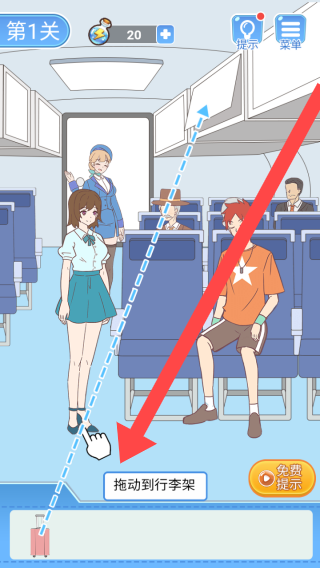 3.依据【拖动到行李架】这类关卡提示,精准操作物品。此过程考验观察力与操作准确性,完成操作可顺利通过关卡,逐步解锁更多游戏内容,推动游戏进程。