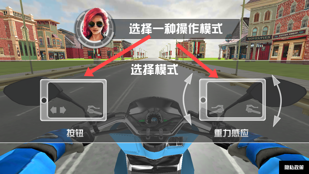 2、初次进入游戏,会提示选择操作模式,分别由按键操控和重力感应操控,选择一个适合的操控模式后开始驾驶。