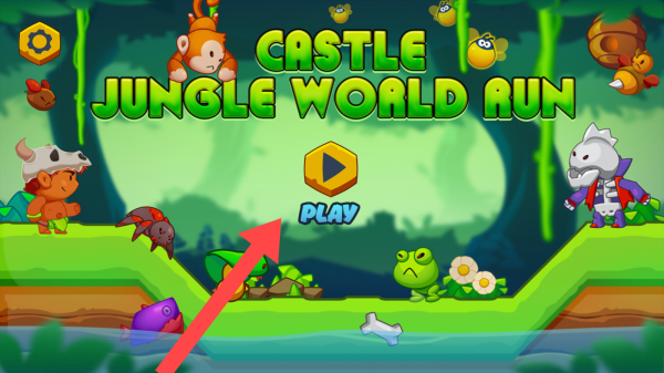 1、周围环绕着卡通形象,背景是丛林场景,绿色植被和神秘氛围,整体展现出横版冒险闯关游戏的特色,点击【PLAY】进入游戏。