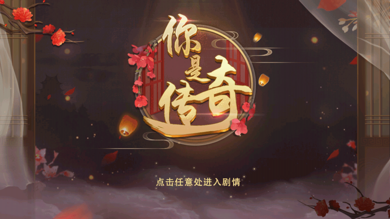 1、第一张图片展示游戏封面【你是传奇】,下方文字提示点击任意处进入剧情,玩家点击屏幕即可开启游戏之旅。