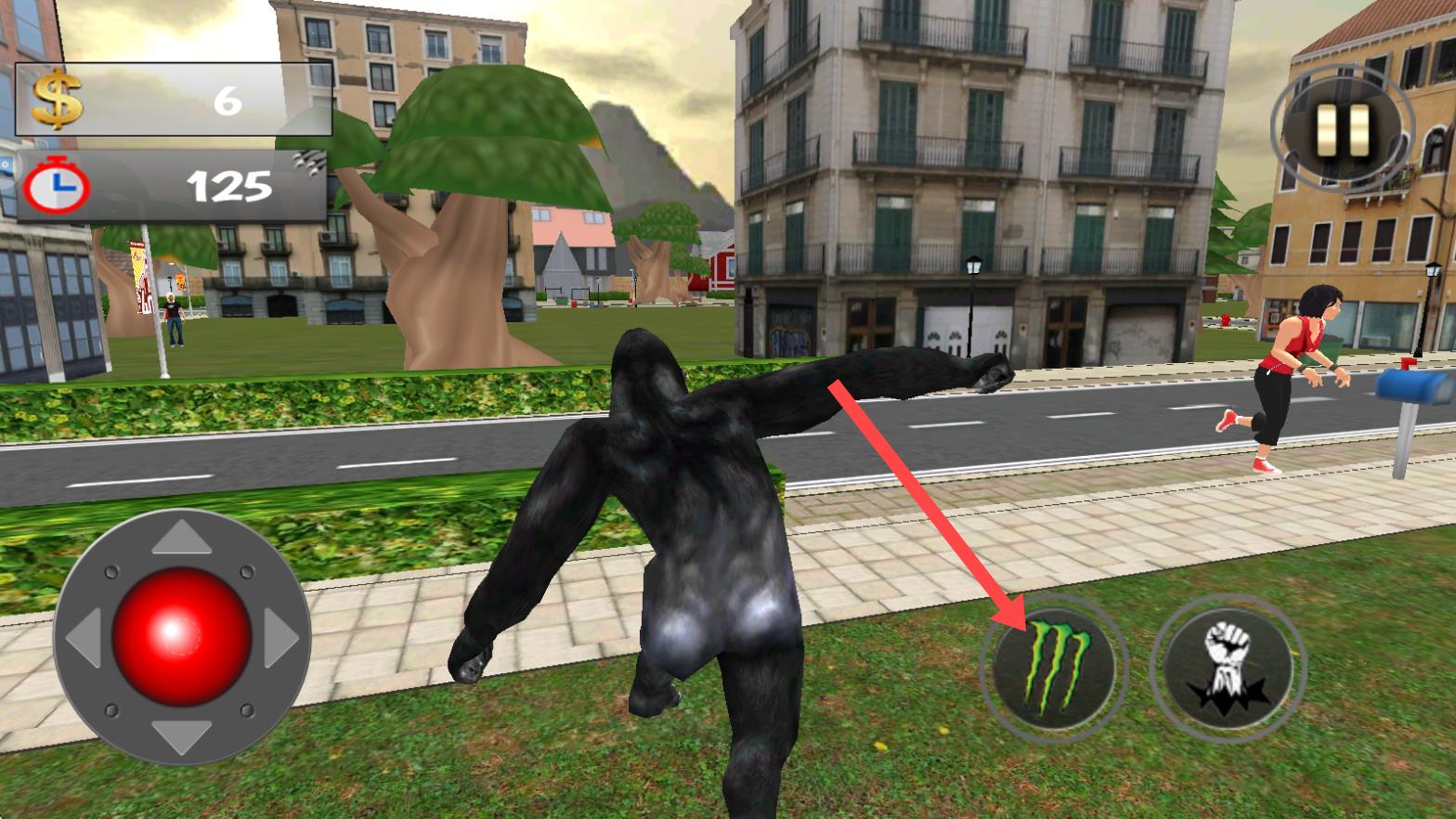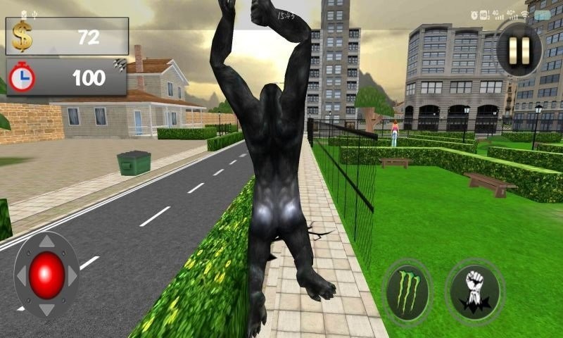 3、沉浸游戏体验:第一视角操控搭配轻松欢快的背景音乐,虚拟摇杆操作简单,让玩家沉浸于大猩猩的破坏之旅。