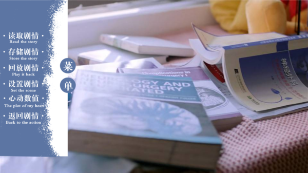 3、【读取剧情】加载存档,【存储剧情】保存进度,【回放剧情】重温内容,【设置剧情】调整参数,【心动数值】查看好感等,【返回剧情】继续游戏。