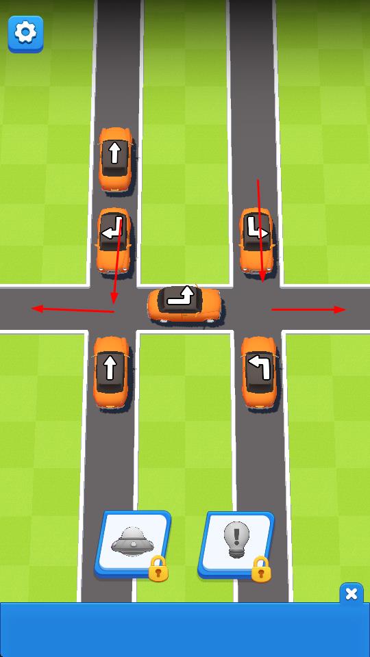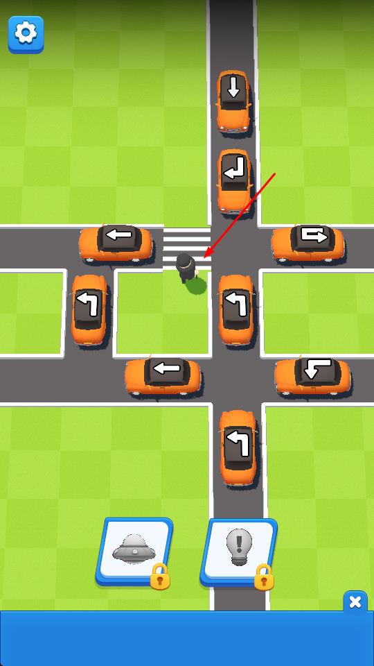 1、车辆移动操作:点击车辆,使其按照箭头指示方向移动,通过合理安排车辆移动顺序,为每辆车开辟畅通道路。