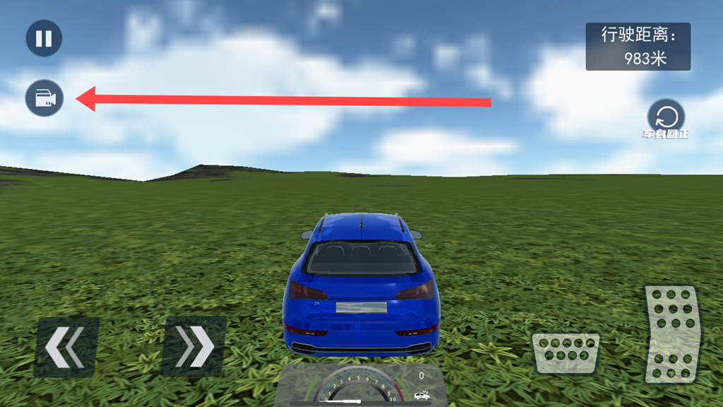 3、除了基本的方向操作和油门刹车系统,左侧还有一个摄像机图标可以进行视角切换,可切换为第一人称视角或者上帝视角。