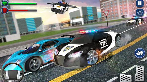 3、罪犯类型应对:面对普通赛车手时,凭借地面极速追击与碰撞拦截迫使对方停下;遭遇飞天罪犯时,及时切换飞行模式升空追击,通过俯冲、盘旋等操作逼近目标。