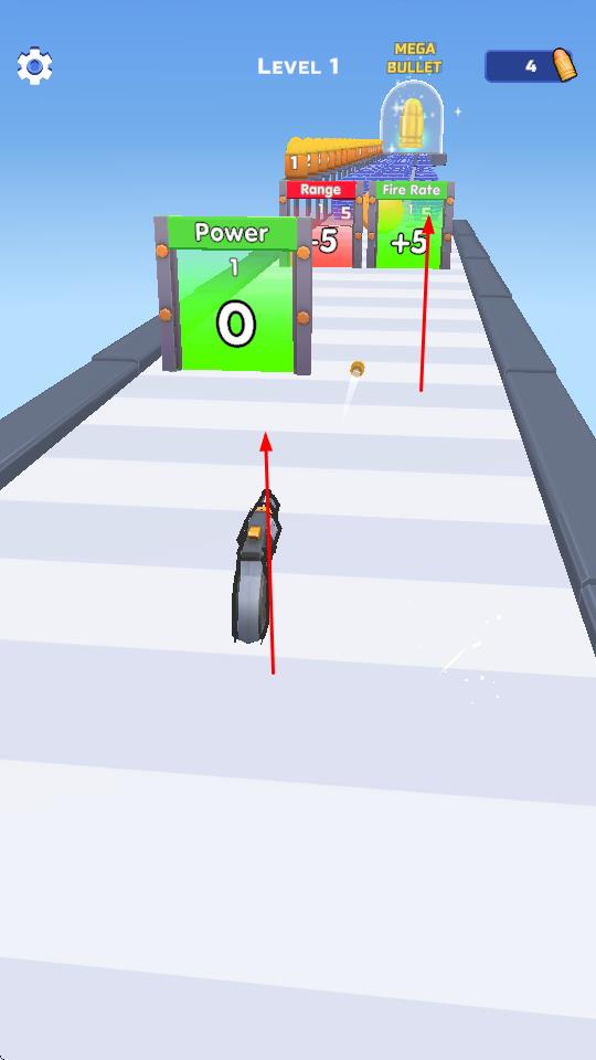 1、子弹收集与倍增系统:玩家需在关卡中收集子弹,并通过特定大门使子弹数量倍增,策略性规划路线,最大化子弹数量。