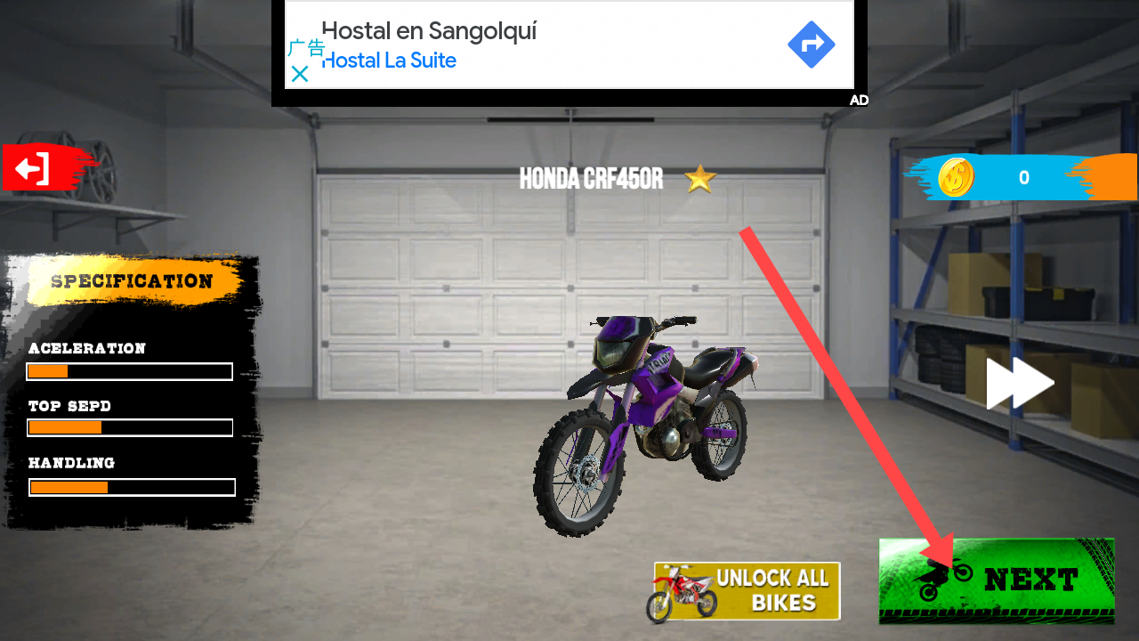2、开始游戏后会进入车库中,挑选一辆合适的车型,然后点击NEXT进入下一步。