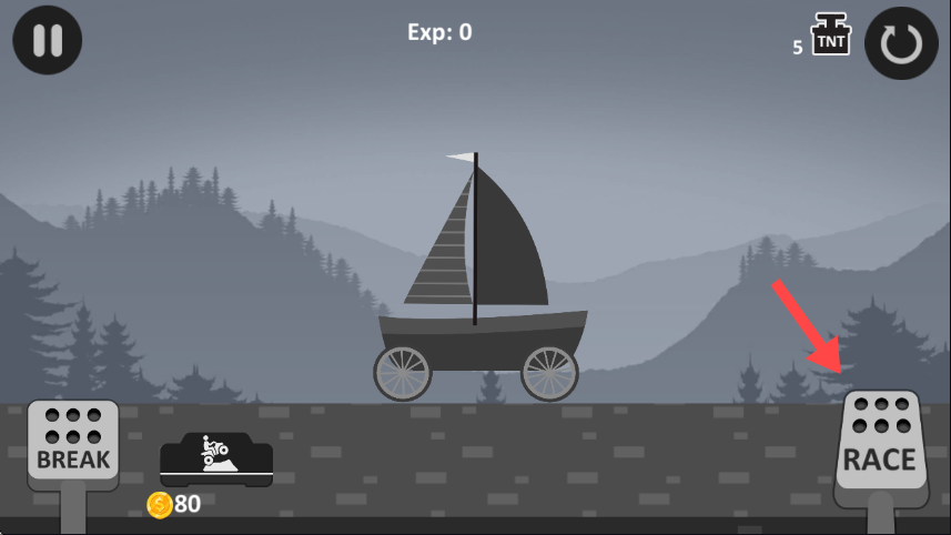 3、进入游戏场景后,点击右下角【RACE】按钮,启动载具开始挑战,获取【Exp】经验值。