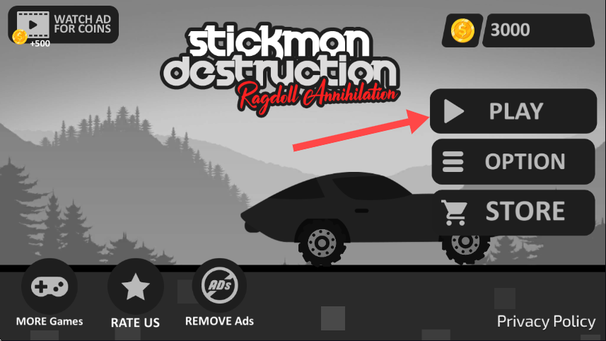 1、游戏主界面点击【PLAY】按钮进入游戏,开启【stickman destruction Ragdoll Annihilation】的挑战之旅。