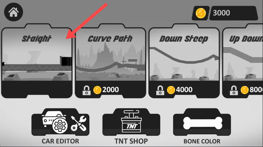 2、关卡选择界面点击【Straight】关卡,准备进入直道场景进行游戏。