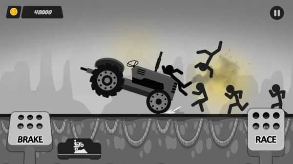 2、路径规划高效摧毁:观察火柴人分布位置,规划最佳行驶路线,集中撞击密集区域,利用载具的冲击力一次性碾压更多目标,提升金币获取速度。