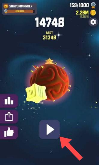 1、进入游戏,点击屏幕发射火箭,在新手教程中熟悉旋转圆球校准操作,驾驶基础飞船开启首个太阳系的探索之旅。