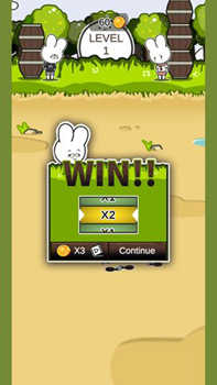 1、完成【LEVEL1】后,出现【WIN】界面,可选择【x2】或【x3】奖励倍数,进入下一关。
