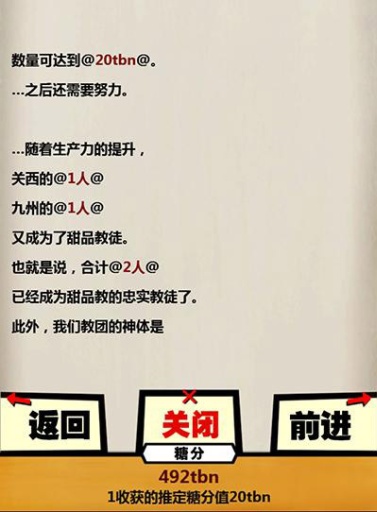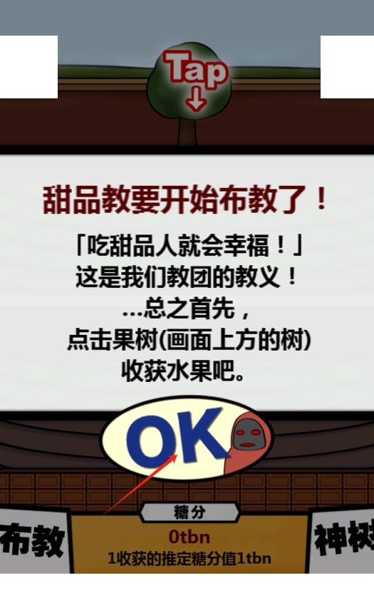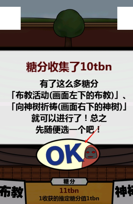 3、当糖分收集达10tbn后,点击OK,可从布教或向神树祈祷中任选一项进行。