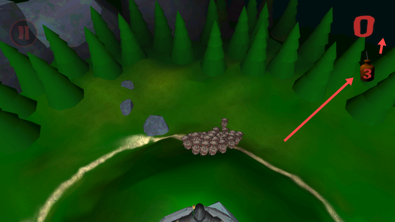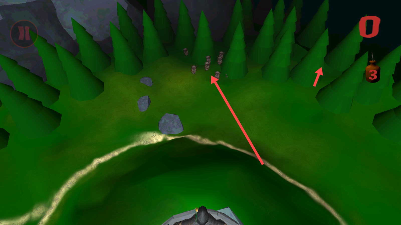 2、怪物阻击防御:不断向下投掷石头,精准阻击靠近高塔的怪物,将其全部消灭,守护高塔安全。