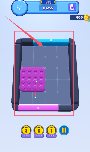 1、把不同颜色的方块推送到相应的颜色门里面即可过关哈。
