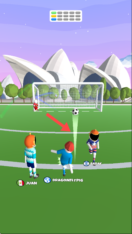 1、精准瞄准射门得分:进入关卡后,玩家需观察球框位置、角度以及场上障碍物分布,通过手指在屏幕上调整瞄准方向与力度,找准时机点击屏幕射出足球。