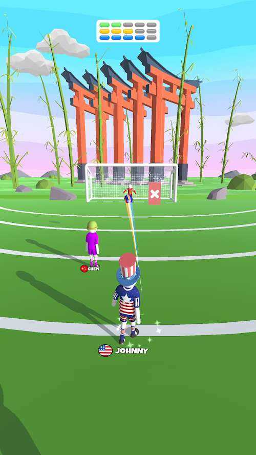 2、便捷操作轻松上手:采用简单的指尖触控操作方式,玩家只需通过点击屏幕瞄准、射球,即可完成游戏动作,轻松享受在绿茵战场射门得分的欢乐氛围,降低上手门槛。