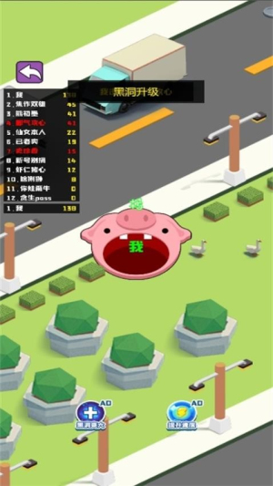 2、控制黑洞在城市中移动,吞噬各类物品增加体积。