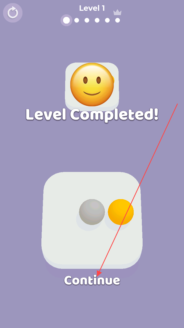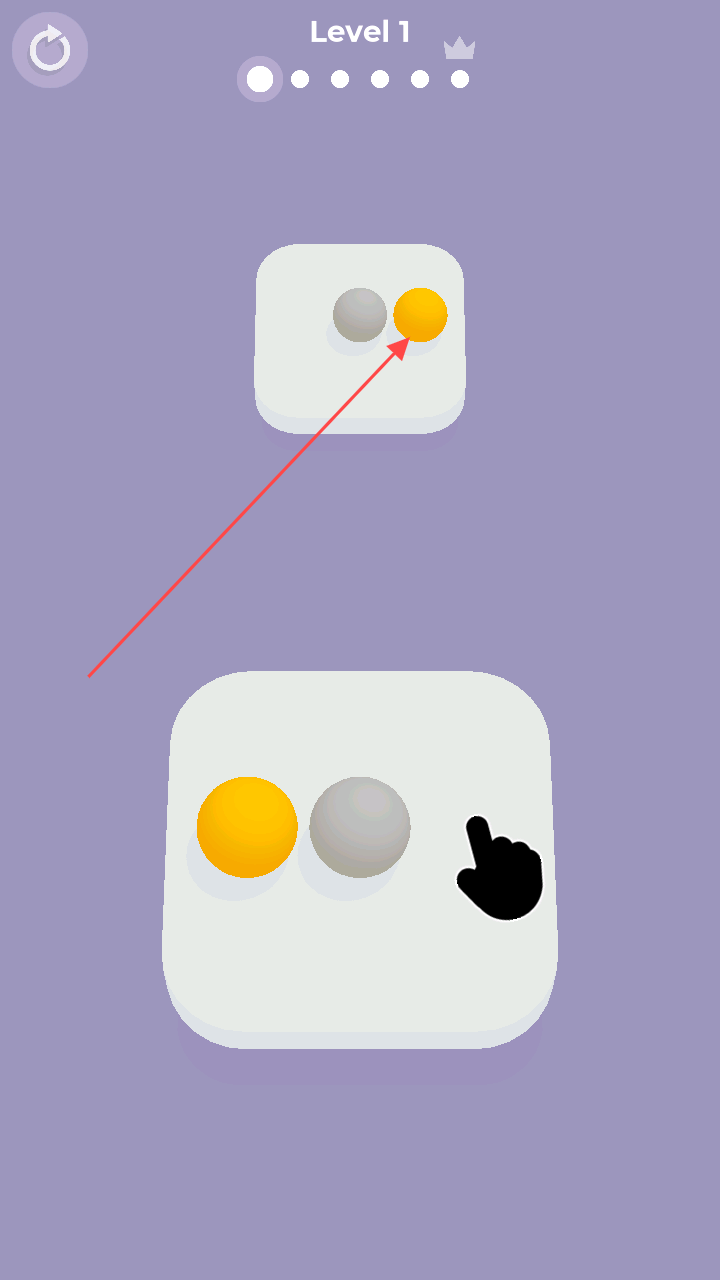 1、进入【Level1】界面后,按红色箭头指示点击黄色球,开始进行小球位置调整操作。