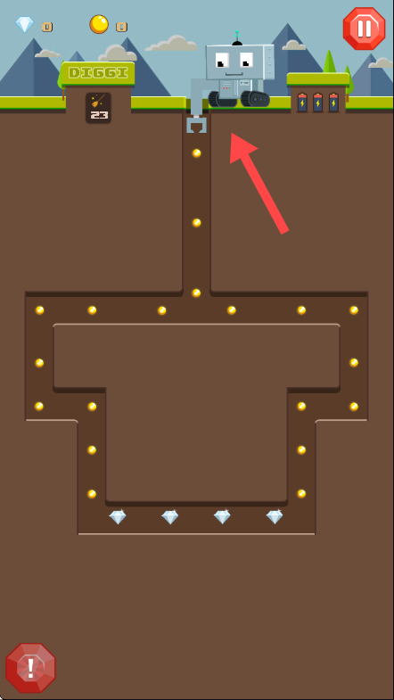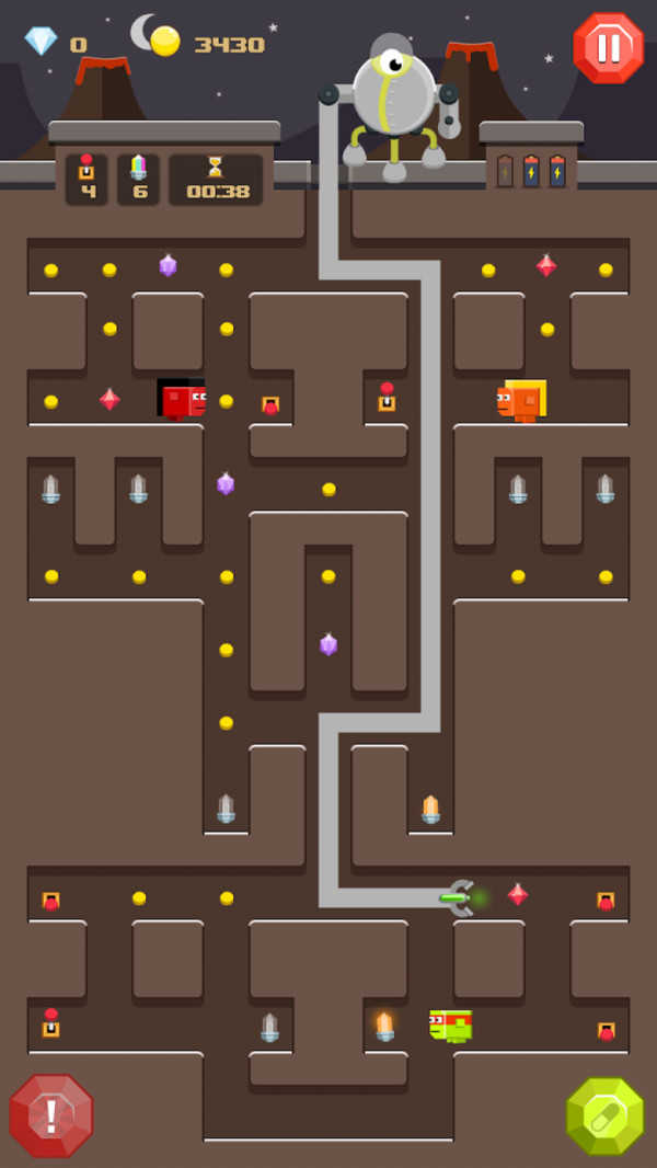 3、操控选中的机器人,依箭头方向移动,在地下通道收集金币和钻石,推进关卡任务。