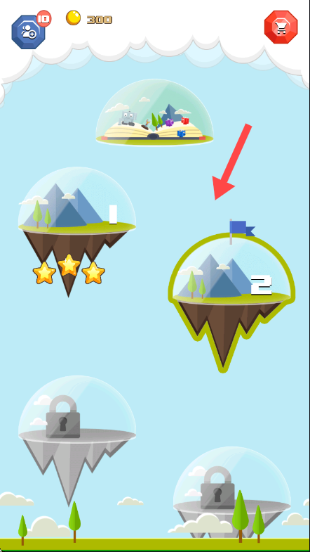 1、在游戏关卡选择界面,点击标有2的悬浮岛关卡,进入对应游戏挑战。