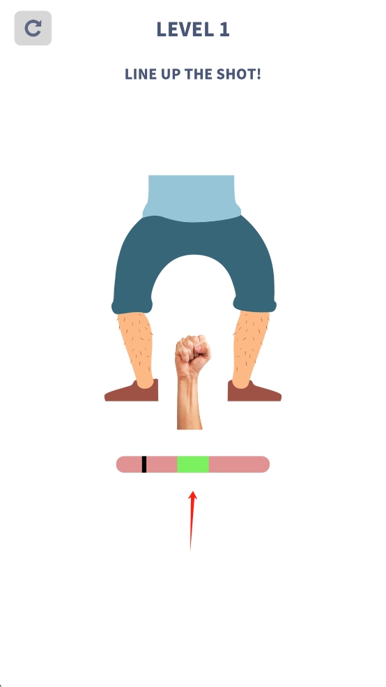 1、第一关当指针移动到绿条的时候,点屏幕,即可完成游戏。