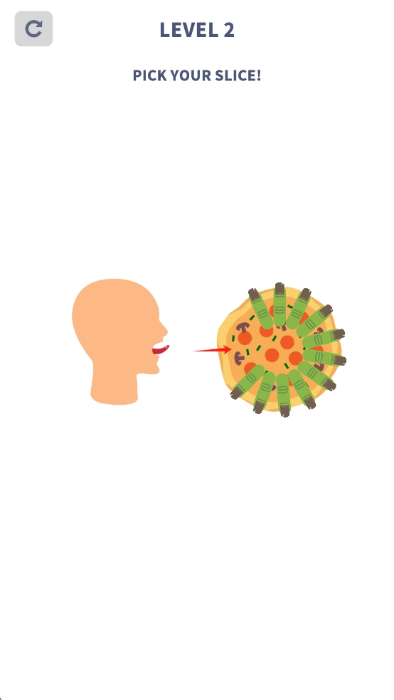 2、第二关披萨会不停地旋转,在没有东西的那一面转过来的时候点击屏幕,即可完成游戏。