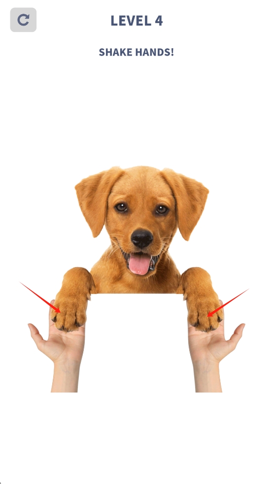 3、第四关小狗的手和人类的手会不停地移动,在双方的手的重叠的时候点击屏幕,即可完成游戏。