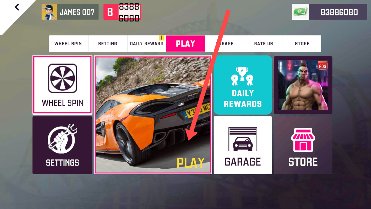 1、进入游戏后点击PLAY,包括后面的选择模式和关卡直接点击高亮区域进入下级页面。
