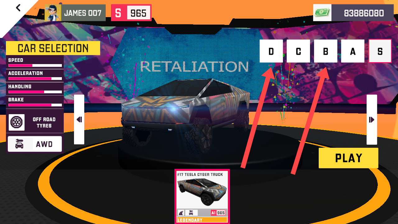 2、在进入车辆选择页面,点击右上角的方块字母按键可以切换不同的车型,每个车型属性不一样。