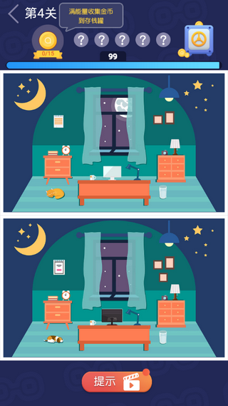 2、限时关卡策略技巧:优先排查画面边缘与中心区域利用差异点数量倒计时合理分配注意力卡顿时果断使用提示道具避免超时后期关卡通过排除法锁定可疑区域。