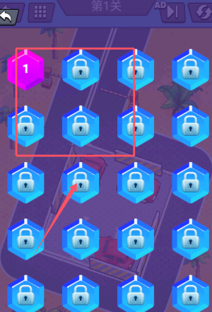 2、规划最优移动路线,连接三辆同色汽车完成消除。