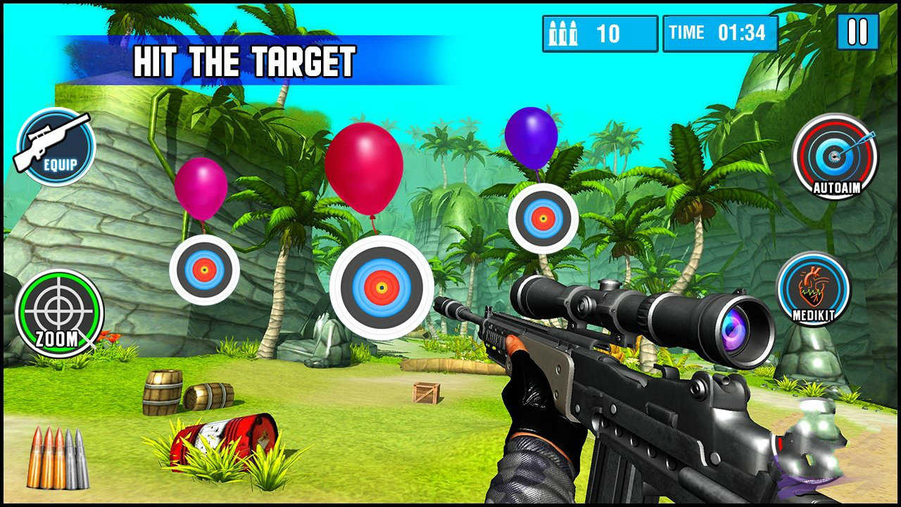 1、靶场训练精准射击:专属靶场模式供玩家练习基础射击技巧,从固定靶到移动靶、人形靶到动物靶,循序渐进提升瞄准精度与反应速度,为实战赛事打下坚实基础。