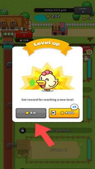 3、角色升级后,点击【箭头】所指的奖励按钮,领取金币等奖励,用于后续游戏发展。