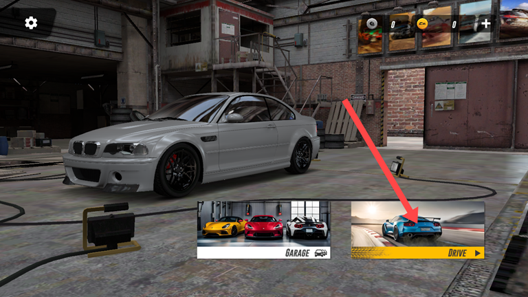 1、进入游戏后分别有GARAGE车库,和DRIVE驾驶模式,我们需要先点击DRIVE模式。
