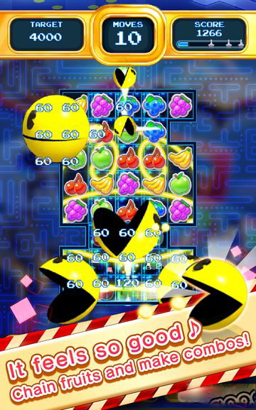 1、经典IP融合:将吃豆人元素与消除玩法巧妙结合,经典角色形象与水果消除机制碰撞出新乐趣,带来独特游戏体验。