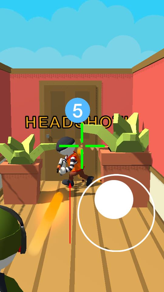 1、玩家操控角色进行射击,需瞄准画面中的敌人,通过射击命中敌人来推进游戏,比如瞄准戴着头盔的敌人射击。