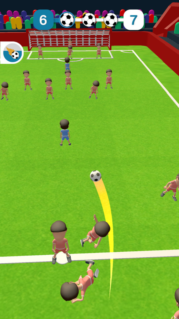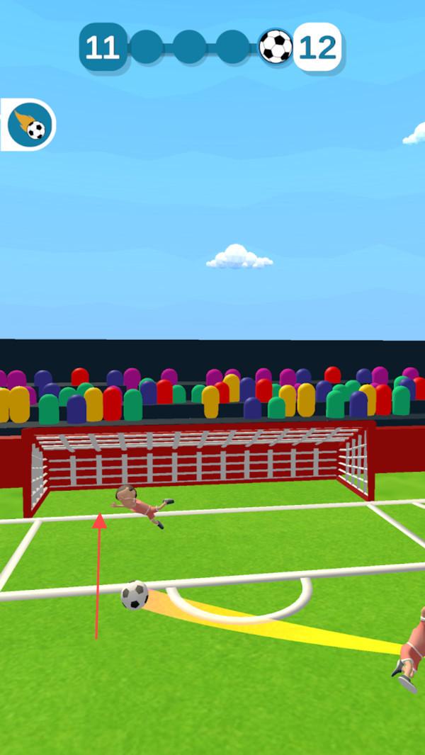 2、瞄准球门方向,抓住时机射门,如同图中展示的那样,争取将球踢入球门。