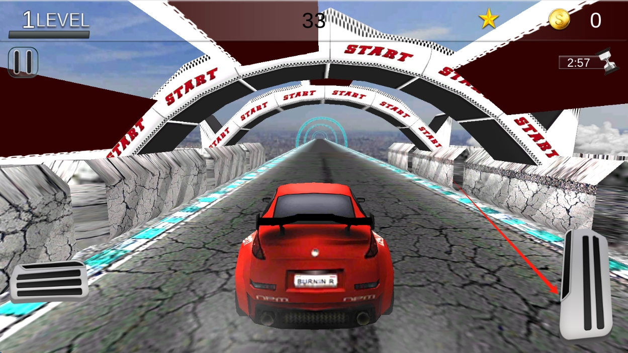 1、独特天空赛道:赛道设计突破传统,架设在天空中,包含悬空路段、环形轨道等创意元素,带来视觉冲击与驾驶挑战。