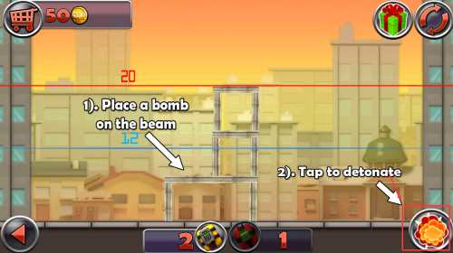 2、丰富任务挑战设计,从简单民居到复杂摩天楼,拆除目标难度逐步提升,完美爆破可获得额外奖励。