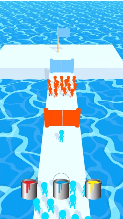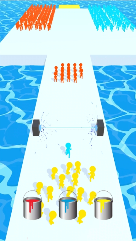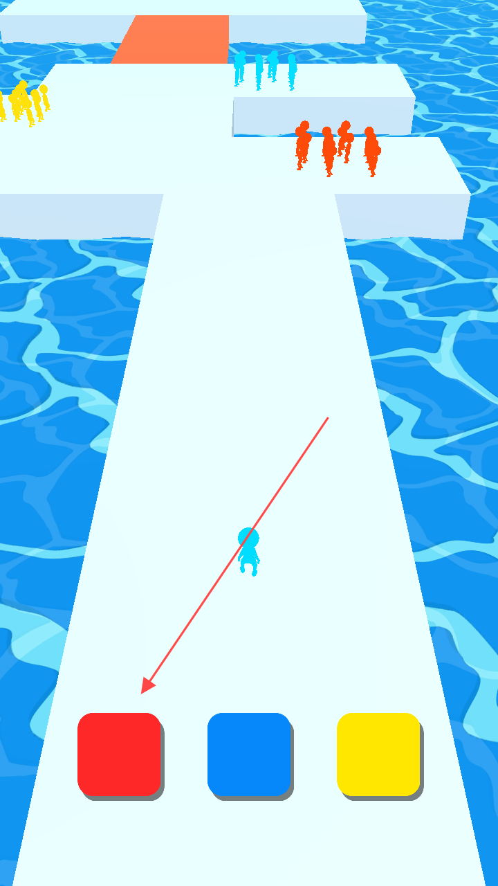 2、在行进时,留意前方人群颜色,点击【对应颜色方块】吸收同色成员,获取队伍资源,为后续游戏积累优势基础。