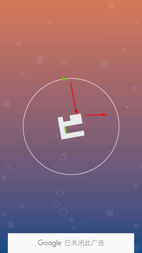 1、触屏操作:通过点击屏幕操控白色图形在圆形区域内移动,收集绿色圆点等目标物。