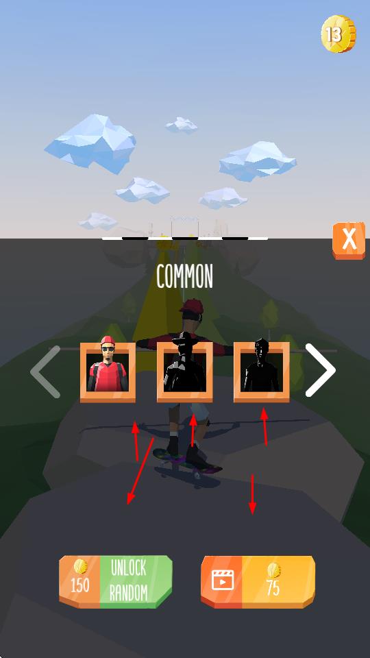 3、玩家可使用收集的金币,通过花费150金币随机解锁或观看广告等方式,解锁不同造型的游戏角色。
