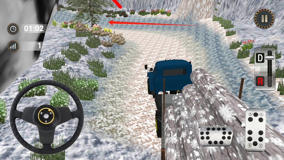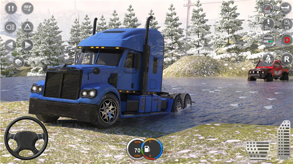 1、轻触屏幕左侧控制方向盘转向,右侧调节油门与刹车力度,在湿滑雪地需小幅度操作避免打滑失控。