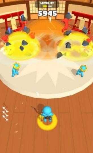 1、在【LEVEL37】室内场景,观察黄色光圈技能效果,时机合适时释放技能攻击敌人,获取分数并推进关卡。